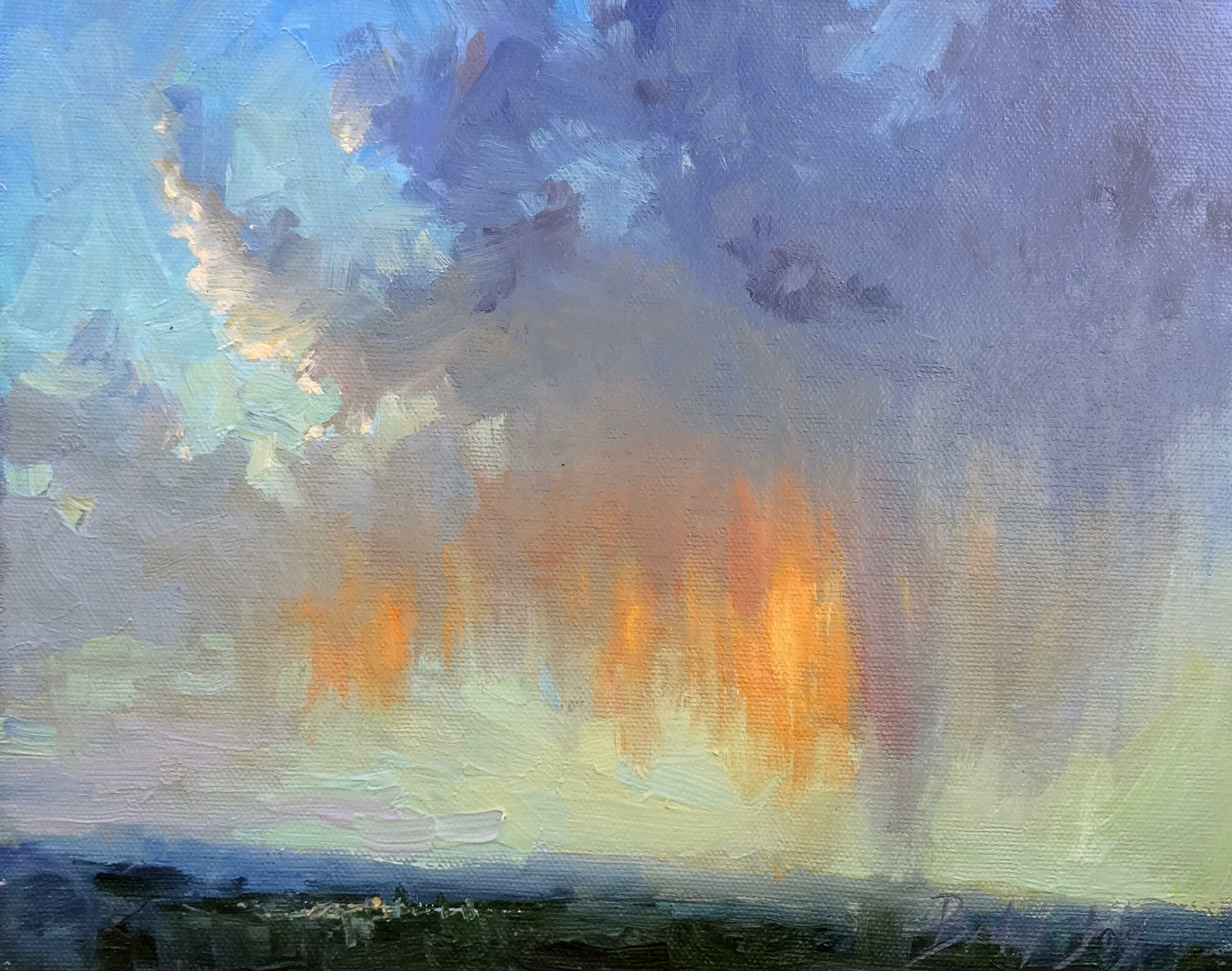 Becky: “I do a brief demo to show my process. Then, continuously go from student to student, helping each individually. We will work from photos and, in part, imagination to manipulate the elements into a glowing painting. I will bring photos, but you can also use your own. All skill levels are welcome. My goal is always to identify each student's strengths and weaknesses. Because we all progress at different rates and in different areas. I like to impart to each individual what they can do to improve their paintings in general. At the end of each session, we will conduct a group critique”.
